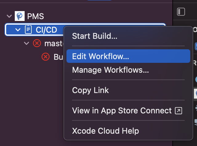 Product -> Xcode Cloud에서 빌드 보기, 시작하기 등등의 기능이 더 보입니다.