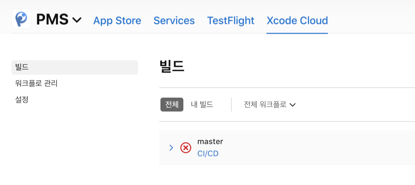 App Store Connect에서도 Xcode Cloud를 볼 수 있습니다.