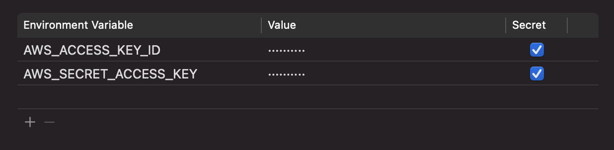 저는 모종의 이유로 AWS access key가 필요해서 Secret 박스를 체크하여 추가하였습니다.
