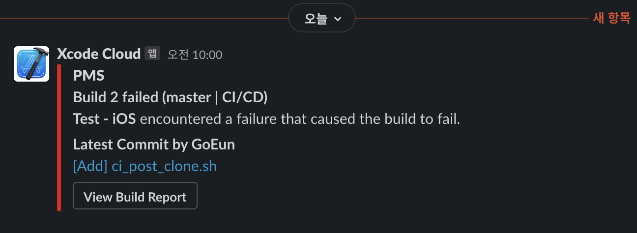 우선 결과는 실패했습니다. 슬랙으로 알람이 잘 오네요.